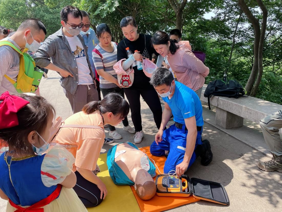 約一個(gè)半小時(shí)后,公司員工全部到達(dá)頂峰,山風(fēng)陣陣吹來(lái),吹干了汗水,隨后在藍(lán)天救援隊(duì)的支持下,我們安排大家進(jìn)行“黃金四分鐘”救援培訓(xùn)活動(dòng)以及小游戲環(huán)節(jié),大家的活動(dòng)積極性很高,山林里飄蕩著陣陣歡聲笑語(yǔ)。