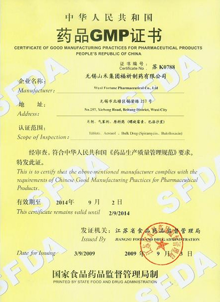 日前,我公司如期獲得由江蘇省食品藥品監(jiān)督管理局頒發(fā)的國內(nèi)新一代喹諾酮類抗生素巴洛沙星原料藥及其口服固體制劑的《藥品GMP證書》(證書編號(hào):蘇K0788),并取得由江蘇省食品藥品檢驗(yàn)所出具的藥品上市前檢驗(yàn)報(bào)告書,為新產(chǎn)品的市場招標(biāo)和推廣工作提供了有力保證。 |