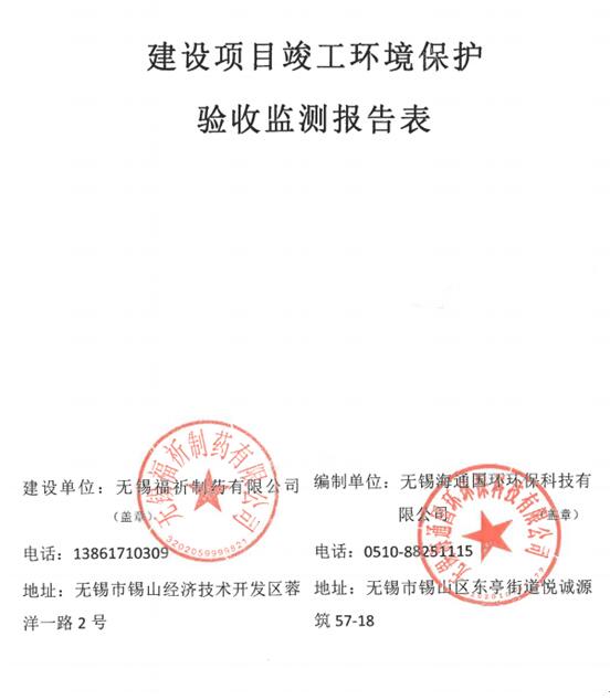 本項目有組織廢氣污染物排放總量滿足《關(guān)于無錫福祈制藥有限公司綜合車間、倉庫改建、辦公樓擴建及輔助設(shè)施新建項目環(huán)境影響報告表的批復》(錫開安環(huán)復[2019]23號,錫山經(jīng)濟技術(shù)開發(fā)區(qū)安全環(huán)保局,2019225日)中污染物排放考核量的要求。
